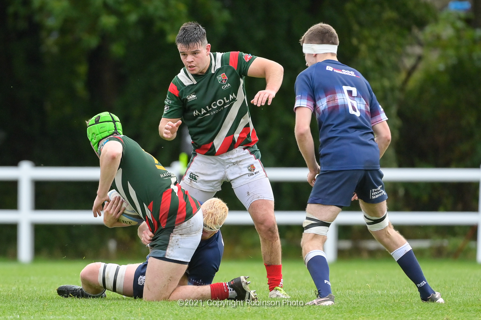 Gregor Hiddlestone, Tony Brogan during the match between GHA RFC and Selkirk RFC in the SRU Tennents Premiership 2021-2022 at Braidholm, Glasgow on Saturday, 2 October, 2021