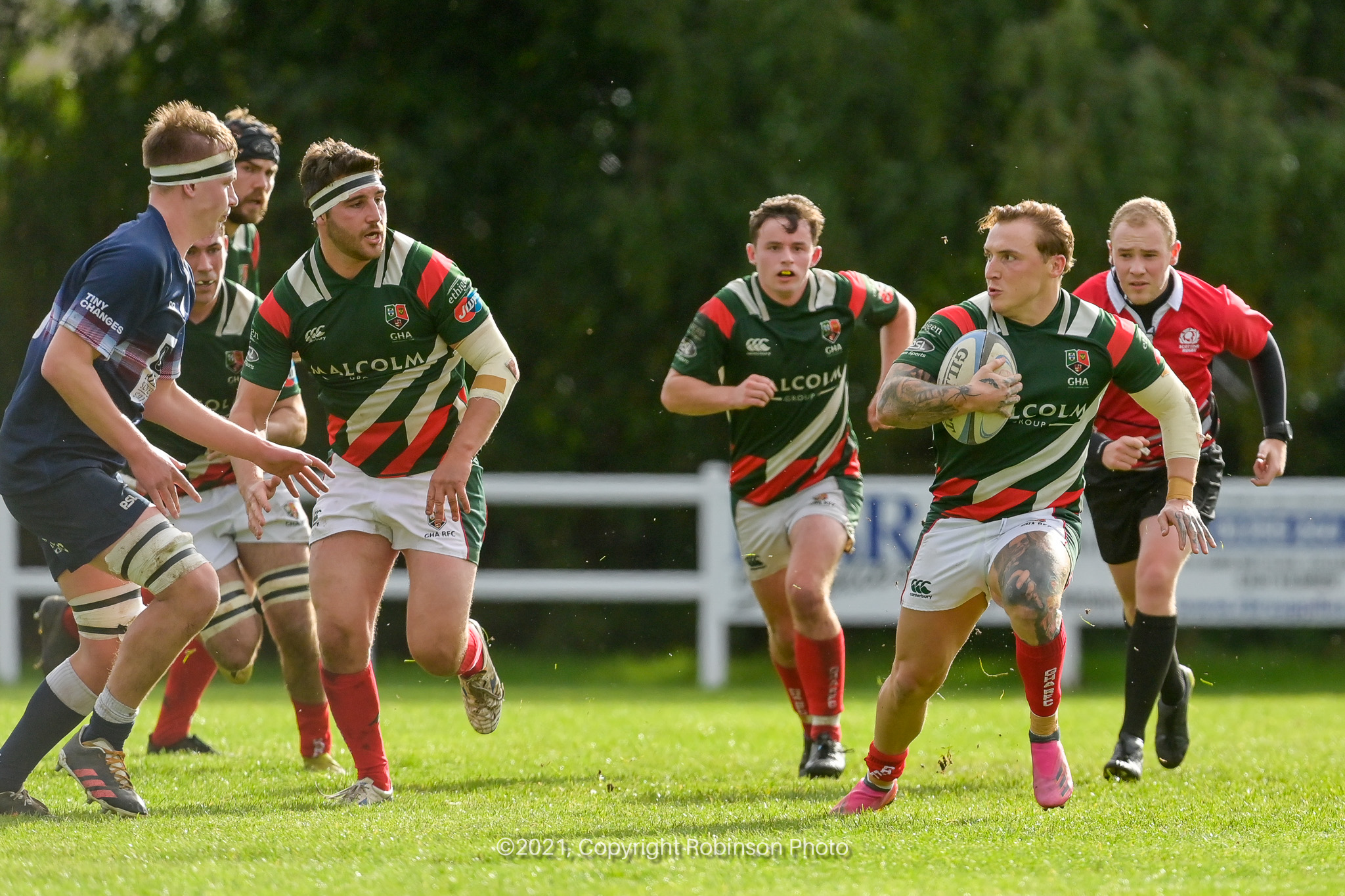 William Alton, George Baird, Scott Derrick, Ross Mabon during the match between GHA RFC and Selkirk RFC in the SRU Tennents Premiership 2021-2022 at Braidholm, Glasgow on Saturday, 2 October, 2021