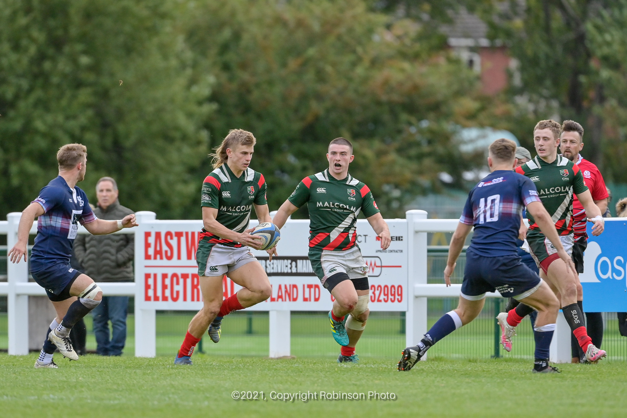 Grant Mollinson, Charlie Lonergan, Sean Carden during the match between GHA RFC and Selkirk RFC in the SRU Tennents Premiership 2021-2022 at Braidholm, Glasgow on Saturday, 2 October, 2021