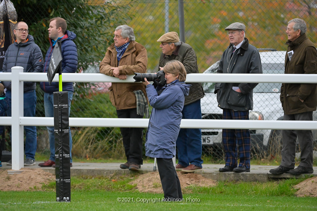 Joyce Robinson, ace photographer, during the match between GHA RFC and Glasgow Hawks RFC in the SRU Tennents Premiership 2021-2022 at Braidholm, Glasgow on Saturday, 16 October, 2021