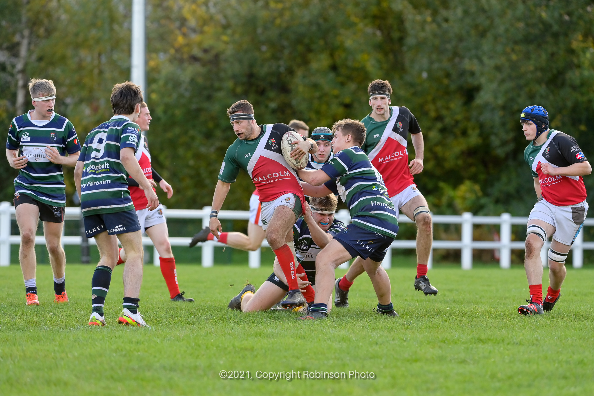 Action from the GHA2 v GHK2 Tennents West Reserve League Div 1 match at Braidholm, Glasgow on Saturday, 30 October 2021 Photographer : Colin Robinson Filename : 20211030-GHA2-v-GHK2-255-CR