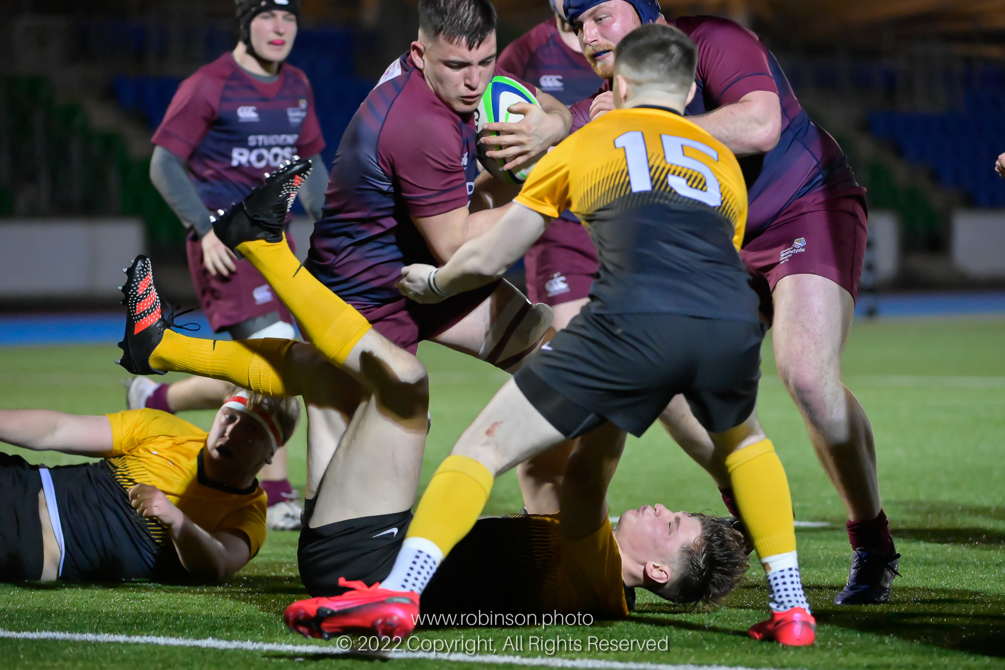 Action from the Strathclyde University RFC v Glasgow University RFC match at Scotstoun Stadium, Glasgow on Friday, 28 January 2022 Photographer : CR Filename : 20220128-StrathclydevGlasgowUni-0919-CR