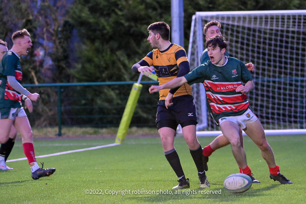 During the GHA RFC 2nd XV v Currie RFC 2nd XV SRU Reserve League Playoff match at GHA RFC Braidholm, Glasgow on Friday, 01 April 2022 Photographer : Colin Robinson Filename : 20220401-GHA2vCurrie2-130-CR