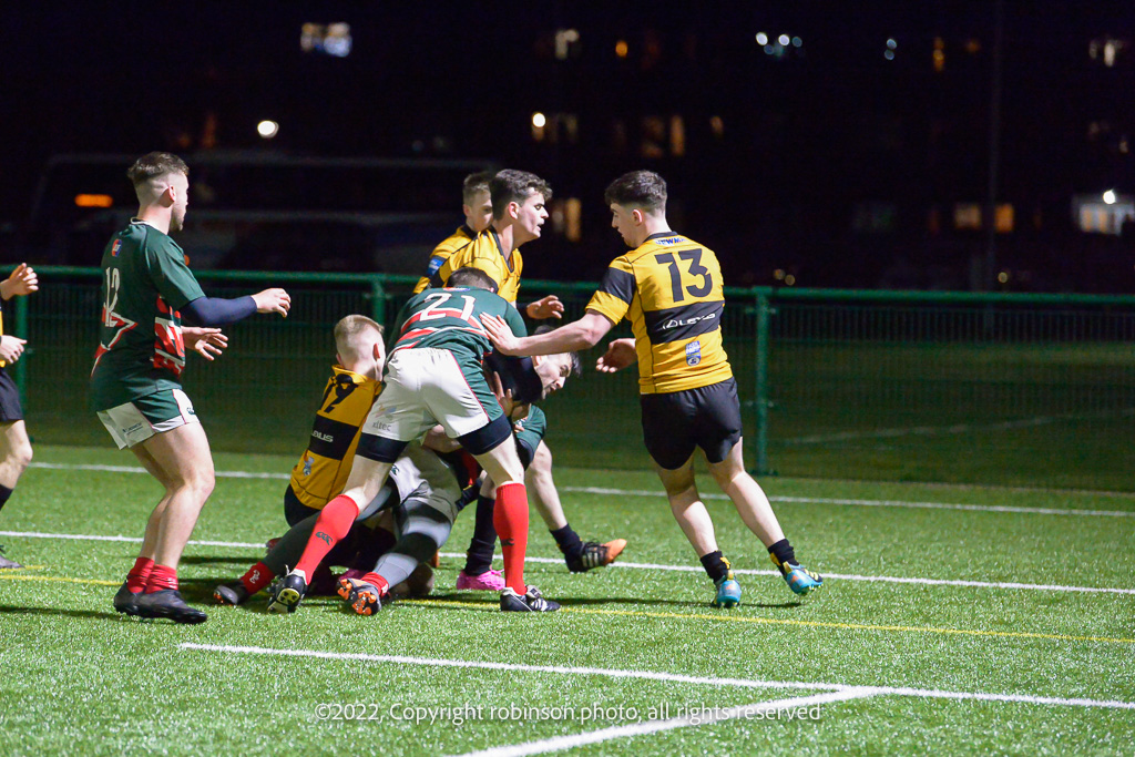 During the GHA RFC 2nd XV v Currie RFC 2nd XV SRU Reserve League Playoff match at GHA RFC Braidholm, Glasgow on Friday, 01 April 2022 Photographer : Joyce Robinson Filename : 20220401-GHA2vCurrie2-217-JR