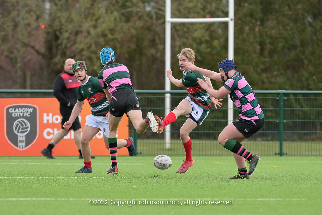 During the GHA RFC U16 v Ayr RFC U16 SRU West District Cup Final match at GHA RFC Braidholm, Glasgow on Sunday, 03 April 2022 Photographer : Colin Robinson Filename : 20220403-GHA-RFC-U16-v-Ayr-RFC-U16-025-CR