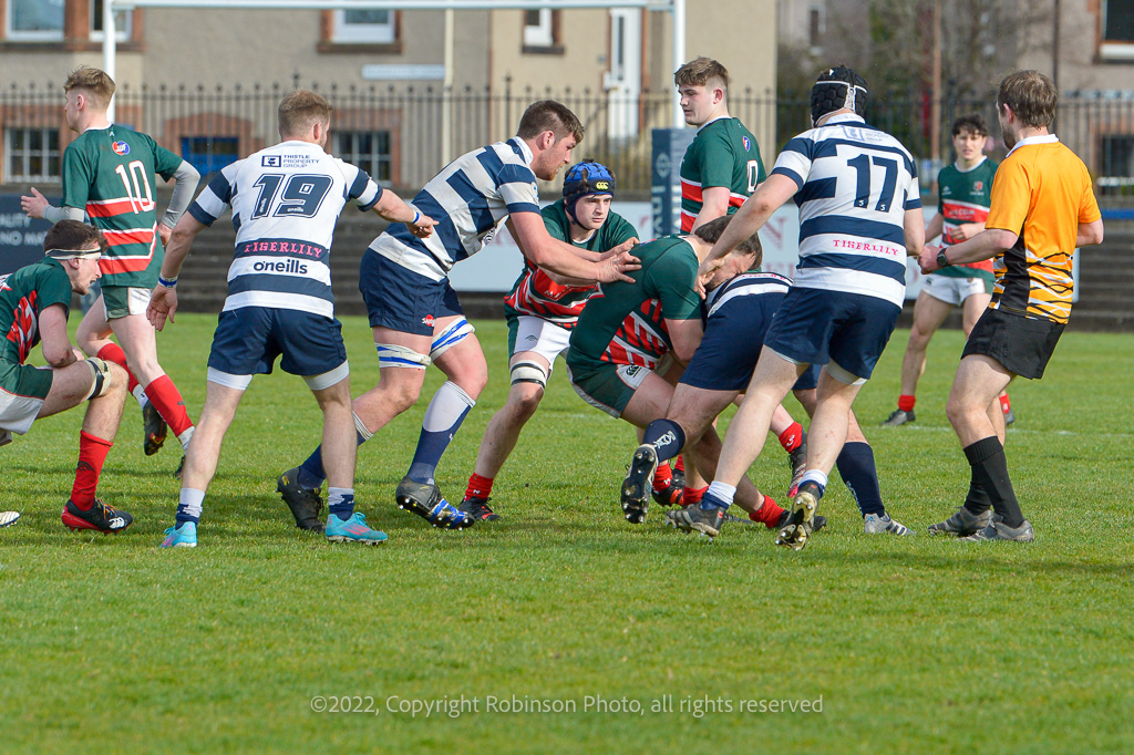 During the Heriots 2 v GHA 2 SRU Reserve League Playoff Final at Goldenacre, Edinburgh on Saturday, 09 April 2022 Photographer : Joyce Robinson Filename : 20220409-Heriots-2-v-GHA-2-409-JR