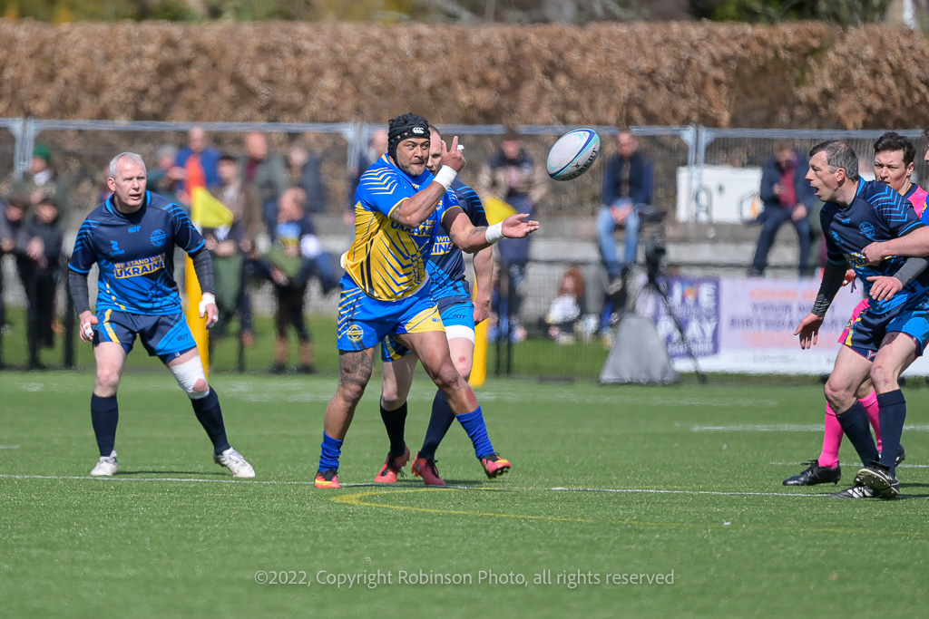 Action from the Melrose Sevens Scottish Legends v World Legends match at The Greenyards, Melrose on Saturday, 09 April 2022 Photographer : Colin Robinson Filename : 20220409-Melrose-Sevens-World-Legends-v-Scottish-Legends-0137-CR