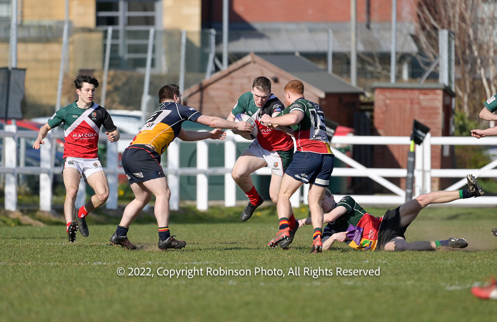 During the GHA RFC 2nd XV v Hillhead Jordandhill 2nd XV RFC SRU Tennent's West Reserve League Div 1 match at GHA RFC Braidholm, Glasgow on Saturday, 26 March 2022 Photographer : Colin Robinson Filename : 20220326-GHA2vHillhead2-003-CR