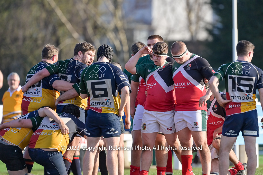 During the GHA RFC 2nd XV v Hillhead Jordandhill 2nd XV RFC SRU Tennent's West Reserve League Div 1 match at GHA RFC Braidholm, Glasgow on Saturday, 26 March 2022 Photographer : Colin Robinson Filename : 20220326-GHA2vHillhead2-203-CR